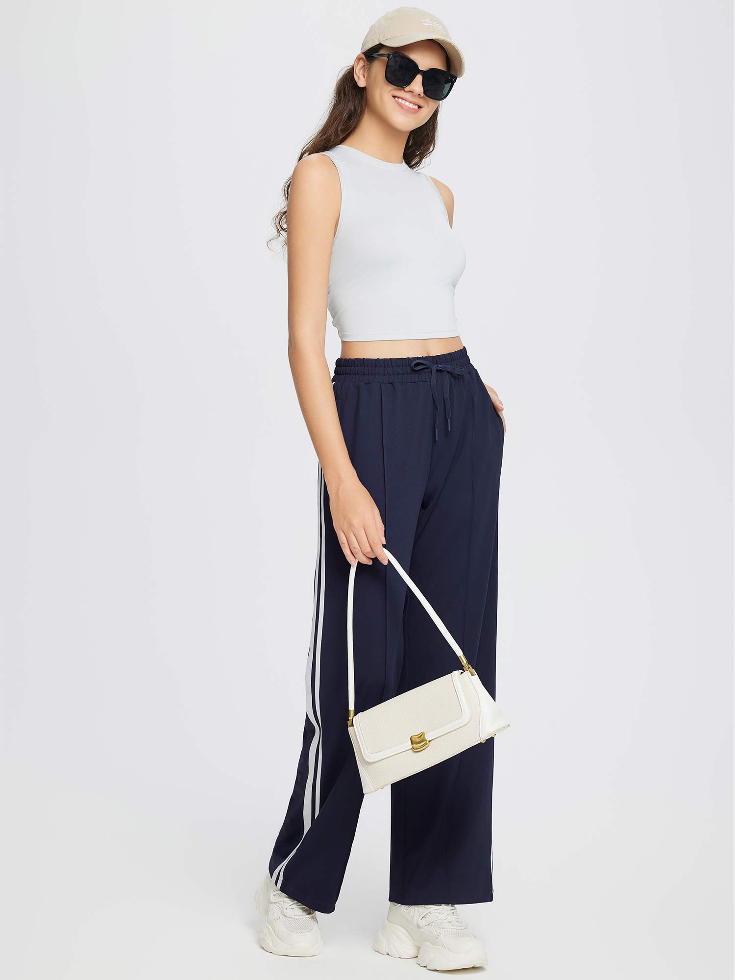 Mid Seams on Leg: Features mid seams and stripes that flatter the leg shape.